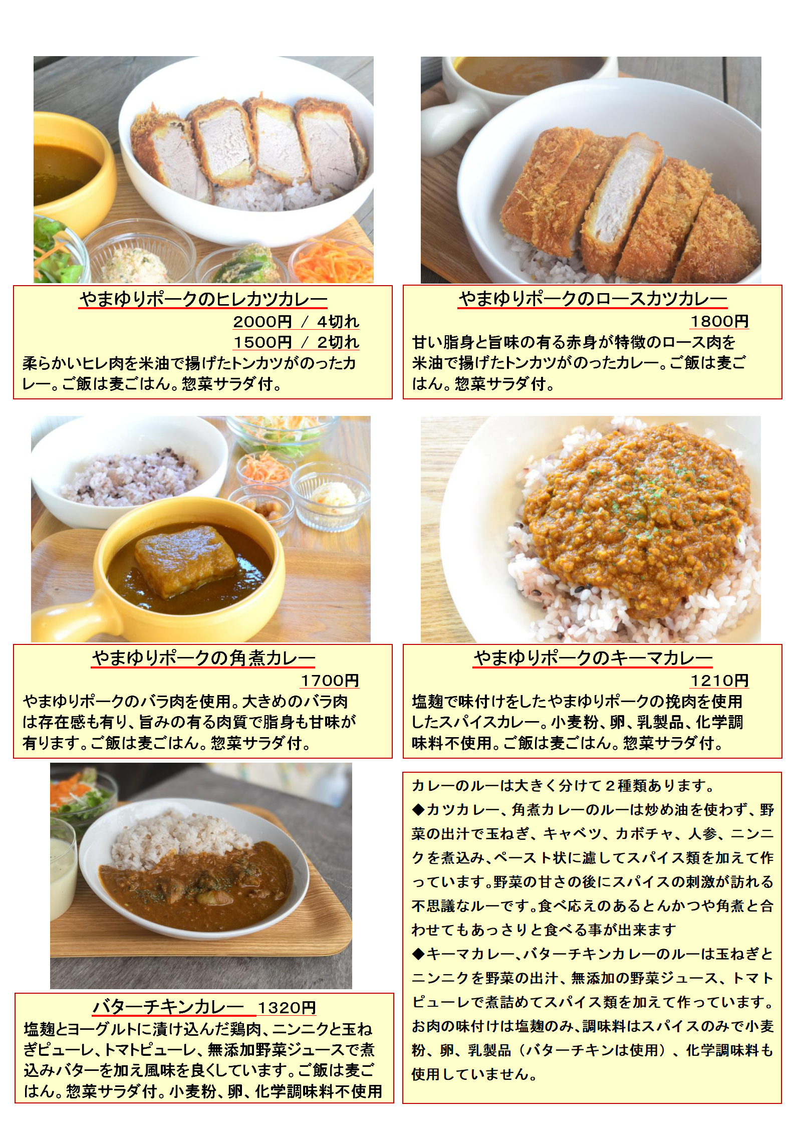 使用する豚肉は全てやまゆりポークです。やまゆりポークは『かながわブランド』に登録された銘柄豚で神奈川県で生まれ育つ美味しい豚肉です。神奈川県の花「やまゆり」にちなんで名前を付けられたこのお肉は県内指定農場で生産されています。